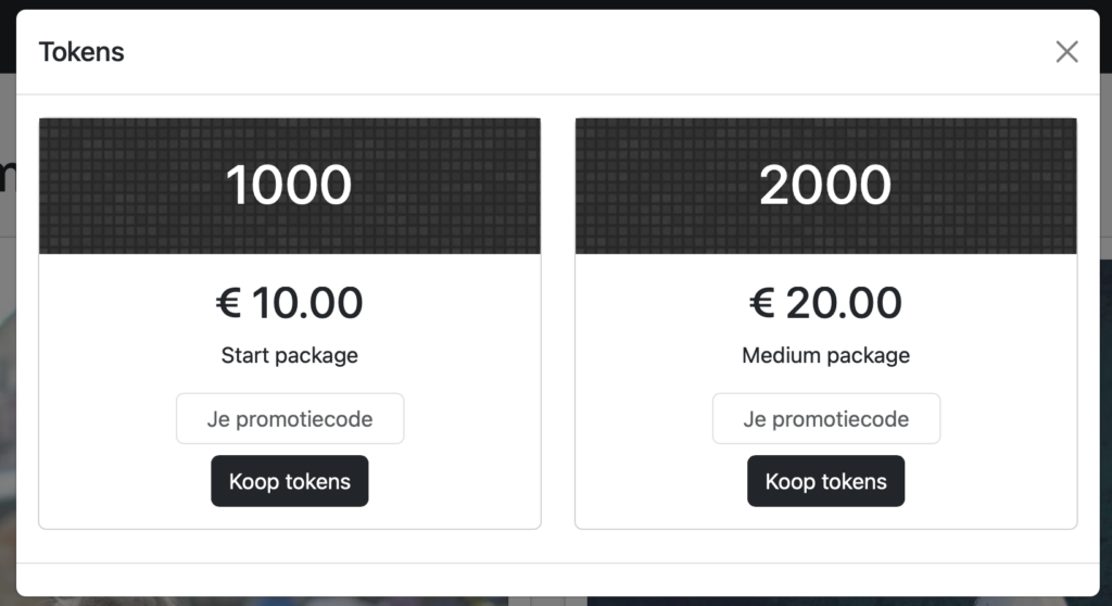 3. Heb je een promotiecode? Vul die dan in en klik op Koop tokens. Easy peasy!