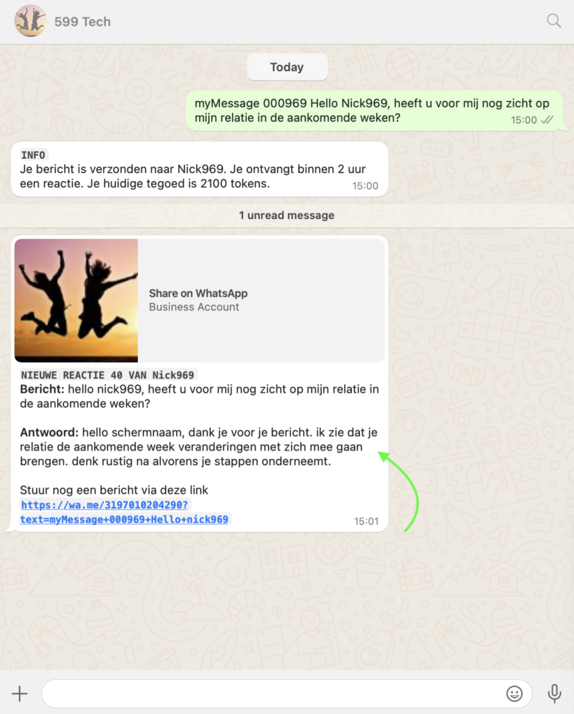 2.. Je kunt ondertussen ontspannen, je krijgt vanzelf een melding in WhatsApp zodra het antwoord er is.